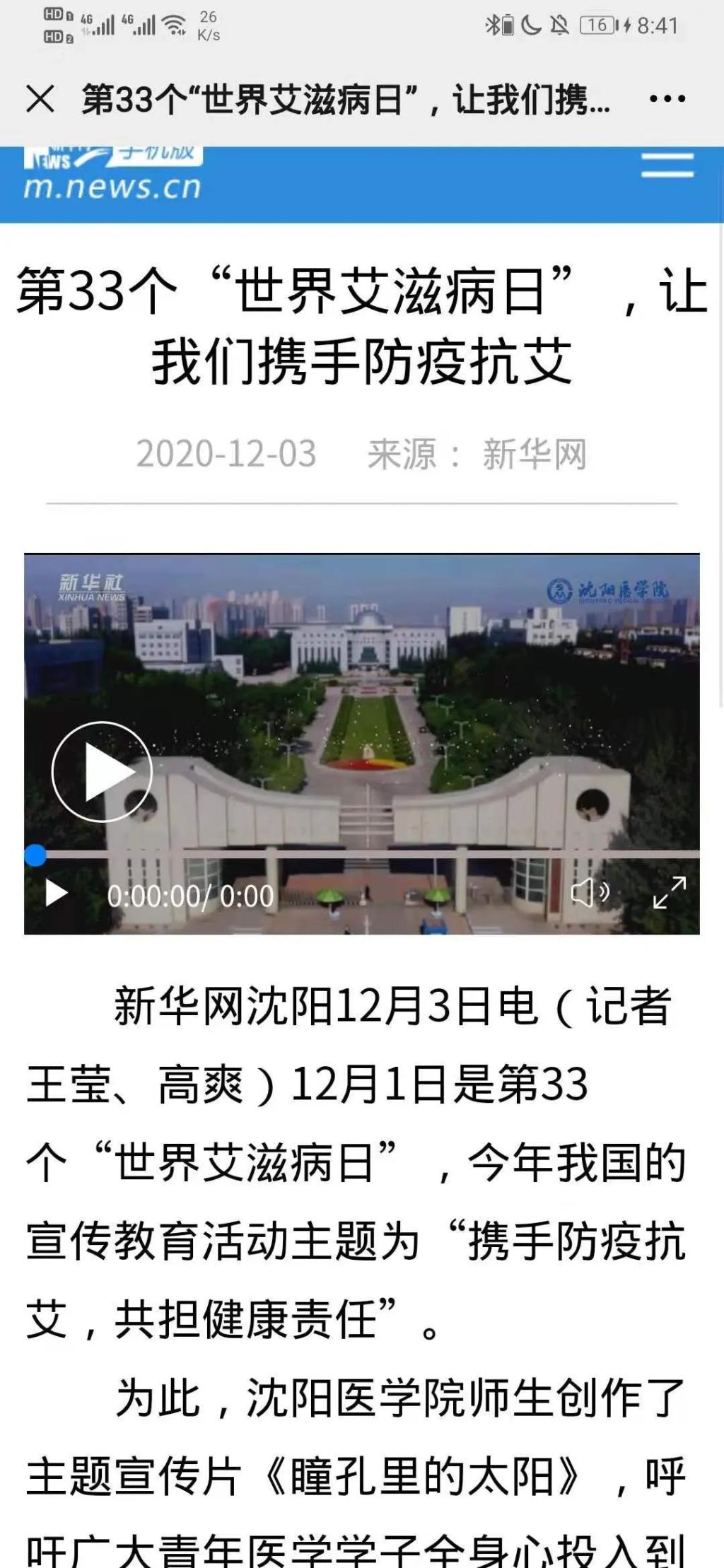 为此,我院中国·yl23411(永利)集团官网师生创作了主题宣传片《瞳孔里的太阳》,学习强国主平台、新华网、云盛京选播我院中国·yl23411(永利)集团官网抗艾主题活动宣传片《瞳孔里的太阳》。